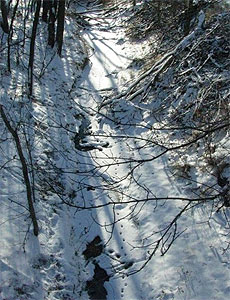 Last week we walked through all the rooms of the barn, an old red one a previous owner saved by tinning the roof. Because some doors were lodged shut, we had to climb over troughs, feeling the smooth valleys in the edge of the wood from the sturdy necks of animals who fed there. Up in the hayloft, mud dauber and barn swallow nests lined the rafters, all quiet in the twenty degrees of January. We own several bales of something, straw or hay, which we don’t know the first thing to do with. A window on either end of the hayloft swings open, one facing the south fields and the hills beyond them, and one overlooking the pond to the north. We talk about sweeping out the neglect up there—another item for the list of things to come, which is already several years’ worth. Down at the edge of the frozen pond we stumble on the remains of a wooden rowboat, a skeleton really. It is the third boat we have found on the property. Two wood duck nests dangle on posts, one with the floor and roof missing. My husband walks out across the ice, learning the size of this body of water, and I skirt the edges, walking where the two-toed deer have left their prints.