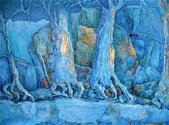 after Night Forest, 18”x 24,” mixed media on canvas,