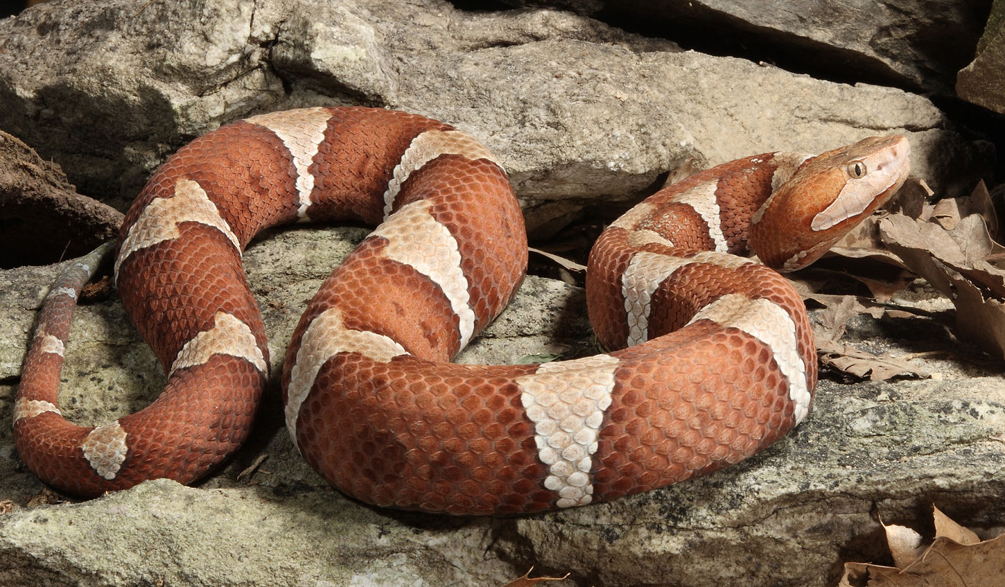 Copperhead snake photo by Dennis W. Donohue, courtesy Shutterstock.