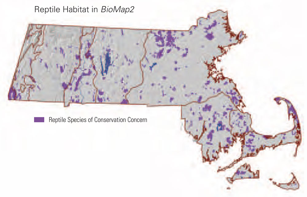 BioMap2 includes 408,000 acres of core habitat for rare or uncommon reptiles, 57 percent of which remain unprotected.