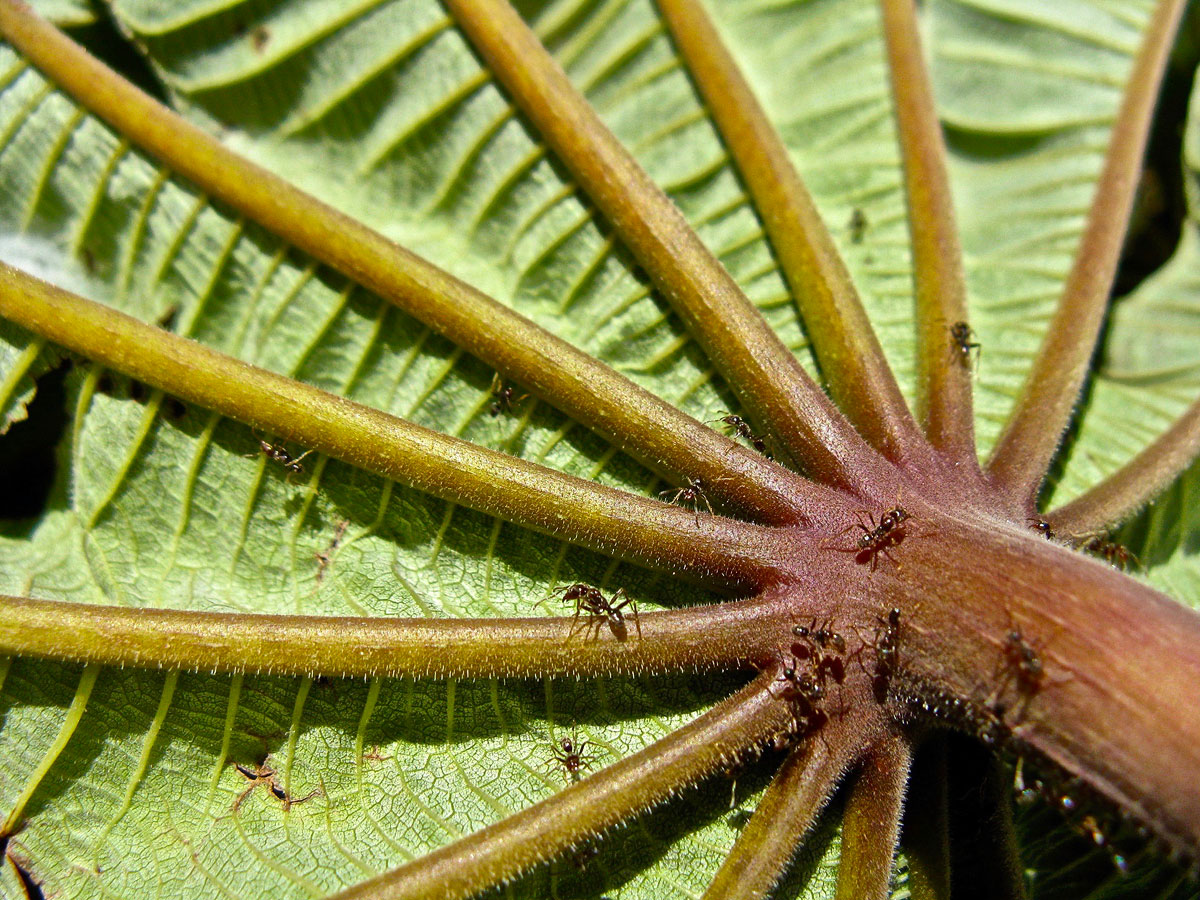 So I developed a research project to look for evidence that climate change was affecting more than just birds around our research station. I combed through the literature and found that in the 1980s the ecologist John Longino had worked locally on the symbiotic relationship between four species of Aztec ants and the two species of cecropia trees that they inhabit. The ants live in the hollow limbs and defend the trees by swarming and biting herbivores (and, I learned quickly, scientists with tree trimmers). Most importantly for me, Longino’s study documented the historical range of each of these species. Both the ants and the trees they live in are restricted to narrow elevation bands with distinct high-, middle-, and low-elevation species. After I found this gem of a study, I set off to see if the ranges of these species had shifted after 25 years.