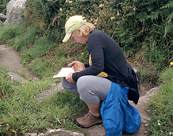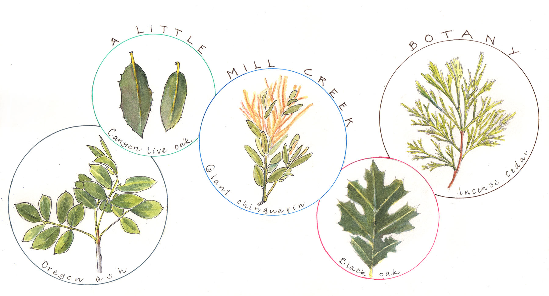 The forest from which I write is not one I know. It’s dusty and dry and supports the same number of conifer species—30!—as my entire country. But here along the banks of Mill Creek, in the rugged confusion of the Klamath Mountains in northwestern California, it’s cool and shaded. Midstream, my daughter Maggie perches on a boulder, her nose in a book, her sandaled feet cooling in tannin-rich water. My husband Marc wanders away, up a narrow two-track. I sit on the moss-covered bridge spanning the creek and open my field journal.