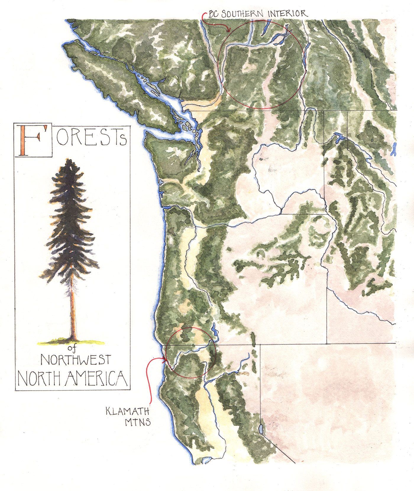 No, my surprise to be here, beneath this mixed canopy of incense cedar, arbutus, and big-leaf maple, has less to do with the man I heard a poet describe as the “orange-crested trumpfish” and more to do with my allegiance to the ecosystems found two state borders and one international boundary to the north. Fifteen years ago, when I returned to Canada, I thought I was returning home. But, home, I soon realized, wasn’t somewhere you went but was, rather, something you practiced. For me, practicing home has come to mean focusing on its natural history, with line and image, pen and paint, in my field journals. In the history of forests, 15 years is a blink of an eye, but in my journals, Volumes 9 to 41 represent the most sustained attention I’ve ever given anything—other than my daughter and maybe my husband.