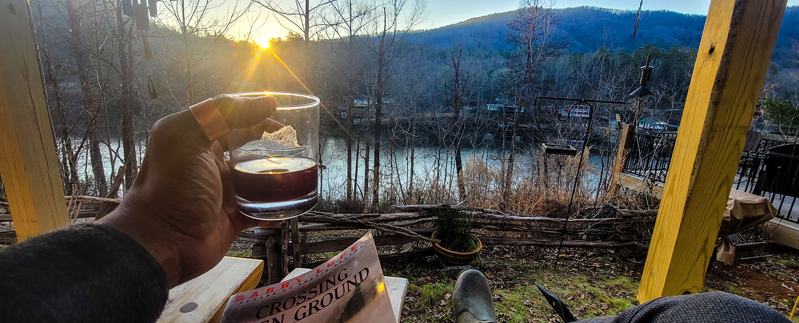Drew Lanham: Yes, I’ve written a good bit up here—that is, when I can make myself sit still enough on rainy days or there’s no building project or “patrolling” of the little 0.6-acre lot that I’ve deemed necessary. I’ve got a poem in the new book that’s simply called “Sunset Camp.” It’s one of the selections called “Field Marks” that kind of direct the reader towards a certain disposition or mood. Just so happens I was inspired to write it when you and our good friend David Taylor helped me christen the place with good cold beers, a whisky (or two), and some guitar singin’. Of course, I think most of my poems try to do that but up in a place called “Broody Cove,” it seems fitting that I would be inspired to write some verse up there. I’ve written other poems about other places from there, as well. Just seems my mind sometimes clears to better creation up there.