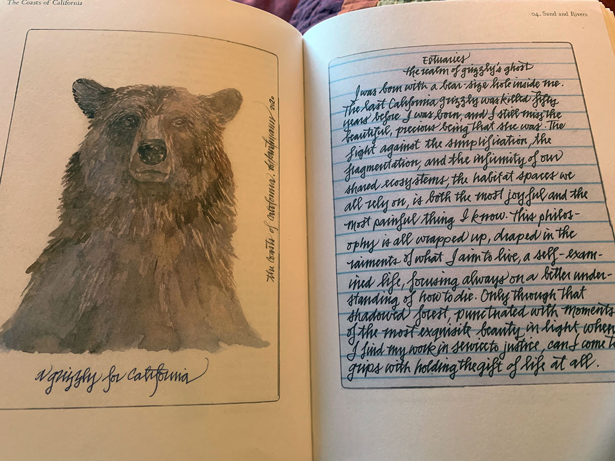Across the blue lines of a piece of college-ruled paper, one of the most affecting handwritten pieces explores the lingering absence of the grizzly bear, a species that was last seen in the state in 1924: