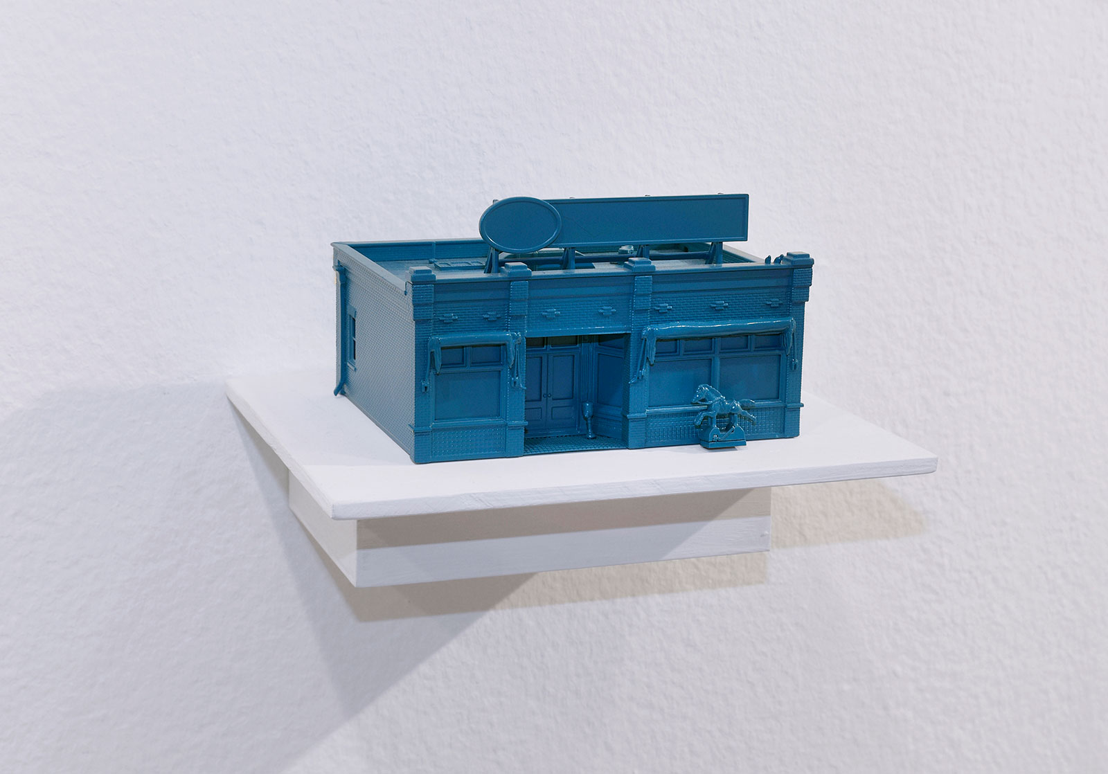 The small, sculptural object “Convenience Store” presents a playful element and takes spectators to a nostalgic past where these stores would be found along roads to give drivers on long journeys a break.