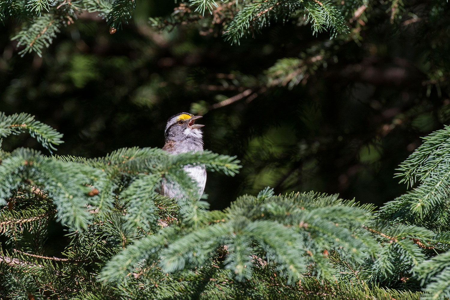 I was lucky. I was not alone, and I had time to observe your creatures. My sutures ached and some days I could barely move, but I could see. Beyond the glass of my window, among clusters of redwoods and elderberry, the astounding white-throated sparrows scratched the ground for seeds. One in particular sang from his perch on a fir branch, his head thrown back and throat full of music. Of thee he sang.